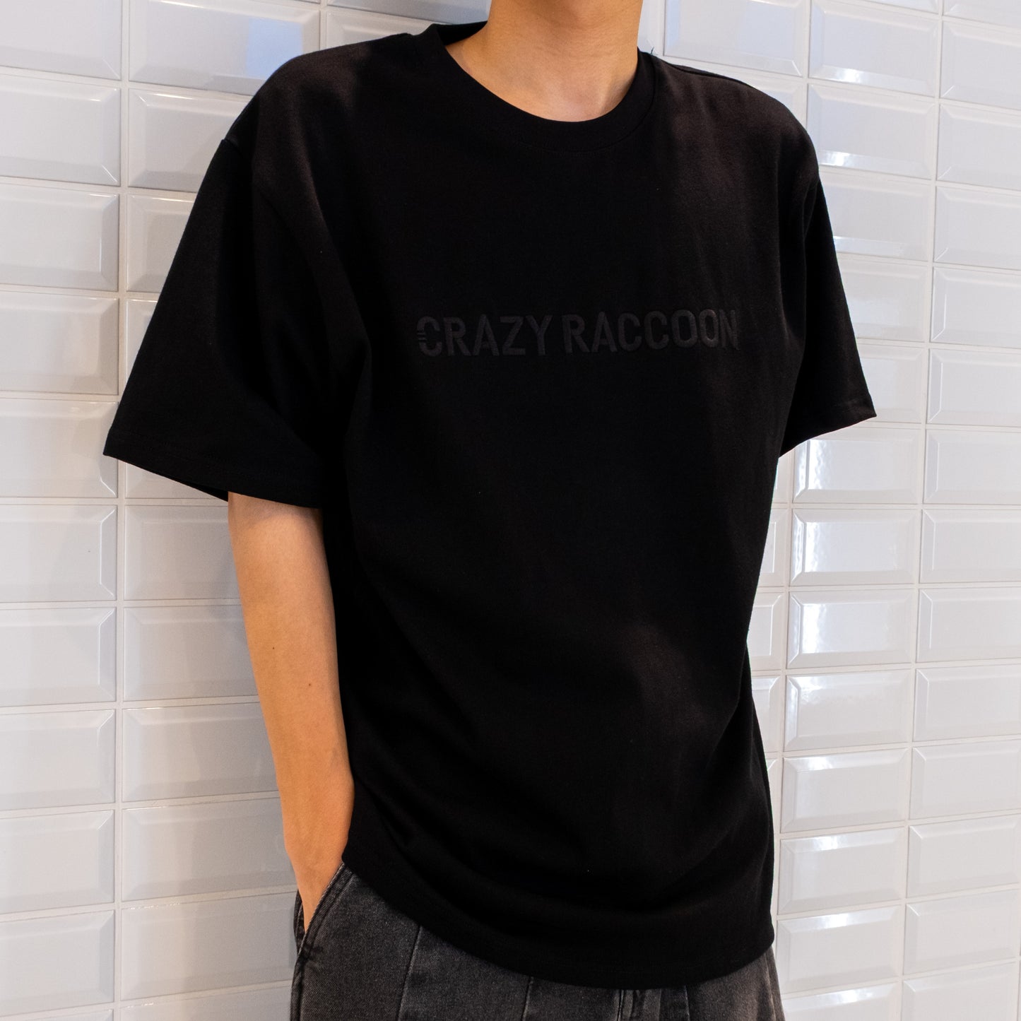 CRAZY RACCOON LOGO SC EMBROIDERY TEE BLACK